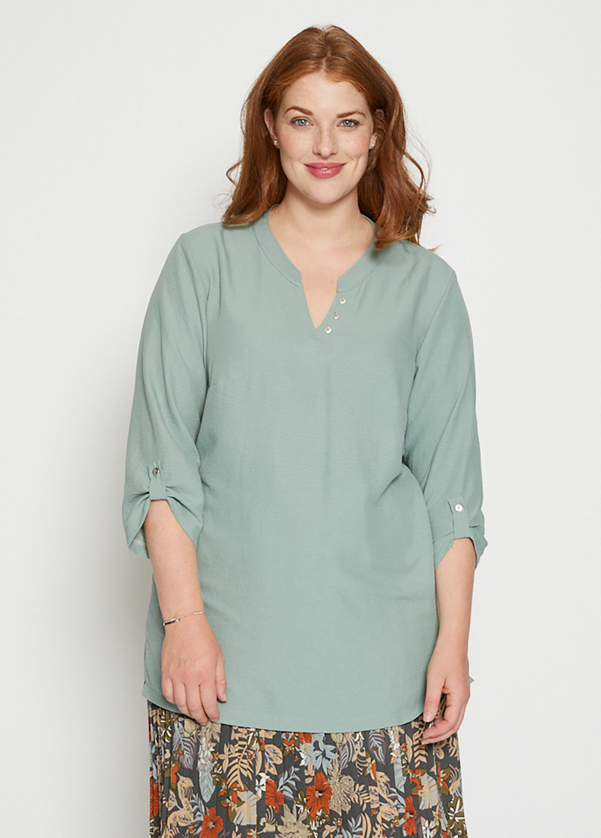 Loose-fitting_button-down_tunic_with_3/4-length_sleeves_Green_FA1_slim Loose-fitting_button-down_tunic_with_3/4-length_sleeves_Green_DO1_slim