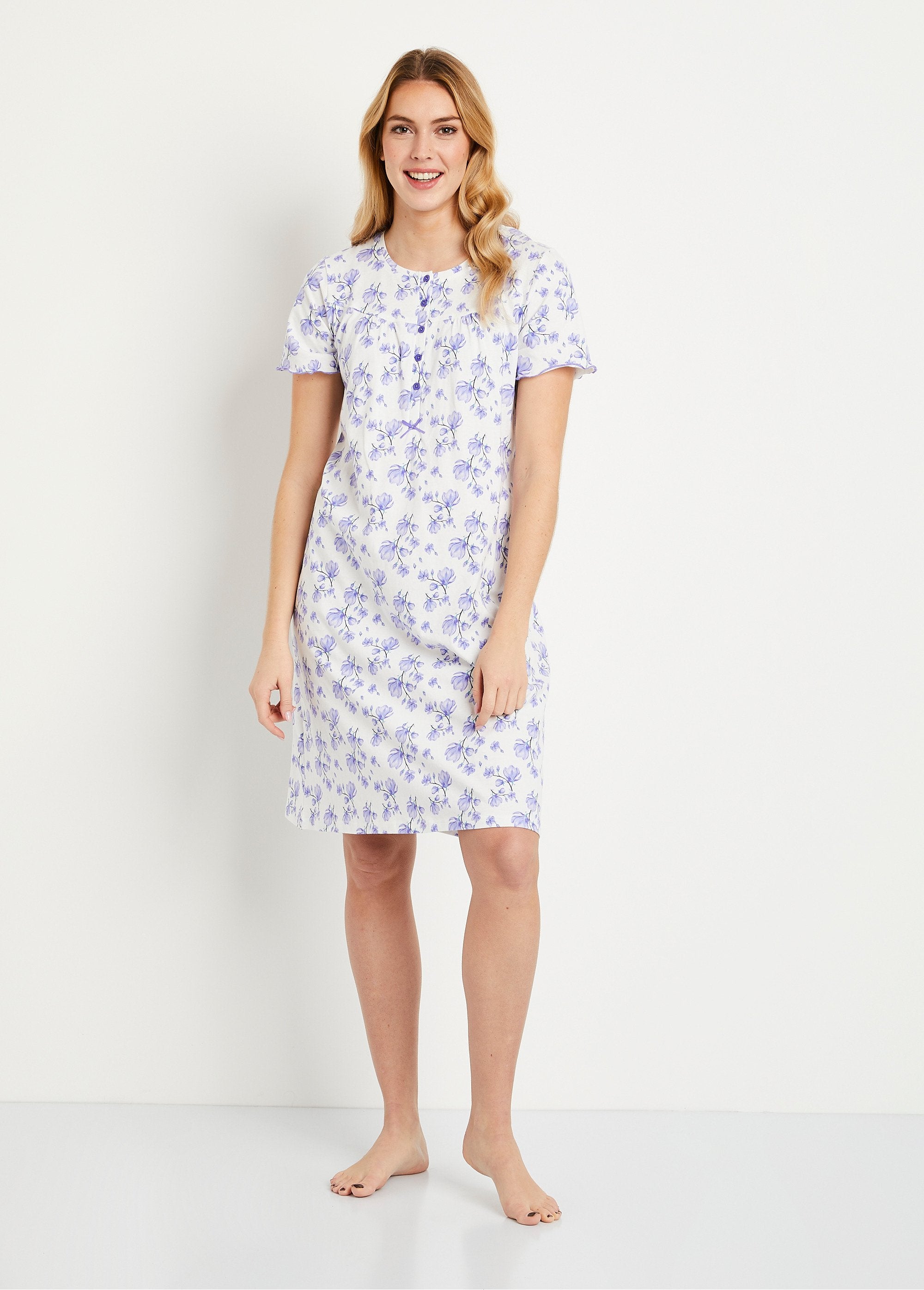 With its deliciously floral print, the women's nightgown adds femininity to comfort. With a nice length and short sleeves, it is ideal in summer accompanied by light mules.