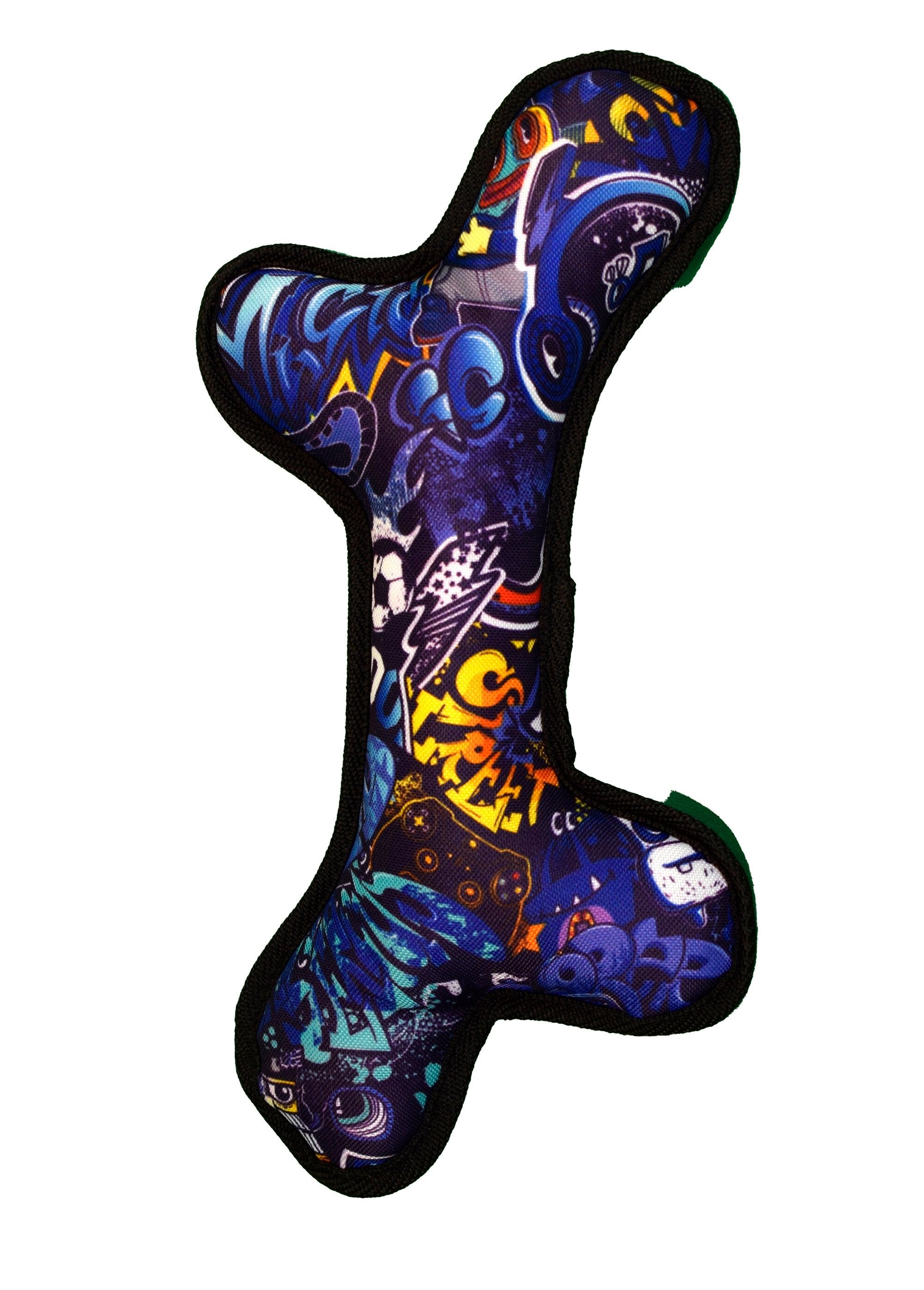 This large bone-shaped plush toy, made of multi-colored fabric, is ideal for satisfying your dog's need to chew without damaging his teeth. Thanks to its ability to absorb your scent, it reassures your companion when you are away, giving him a sense of security. Lightweight and easy to carry, it can be taken anywhere in his living space. Playing is essential to your dog's well-being, and this plush toy provides him with soft and comforting entertainment every day.