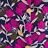 The tunic features a modern floral print. Fancy pleats at the crossed V-neck in front, highlighted with a box pleat for fullness. 3/4 sleeves, elasticated cuffs. Straight base.