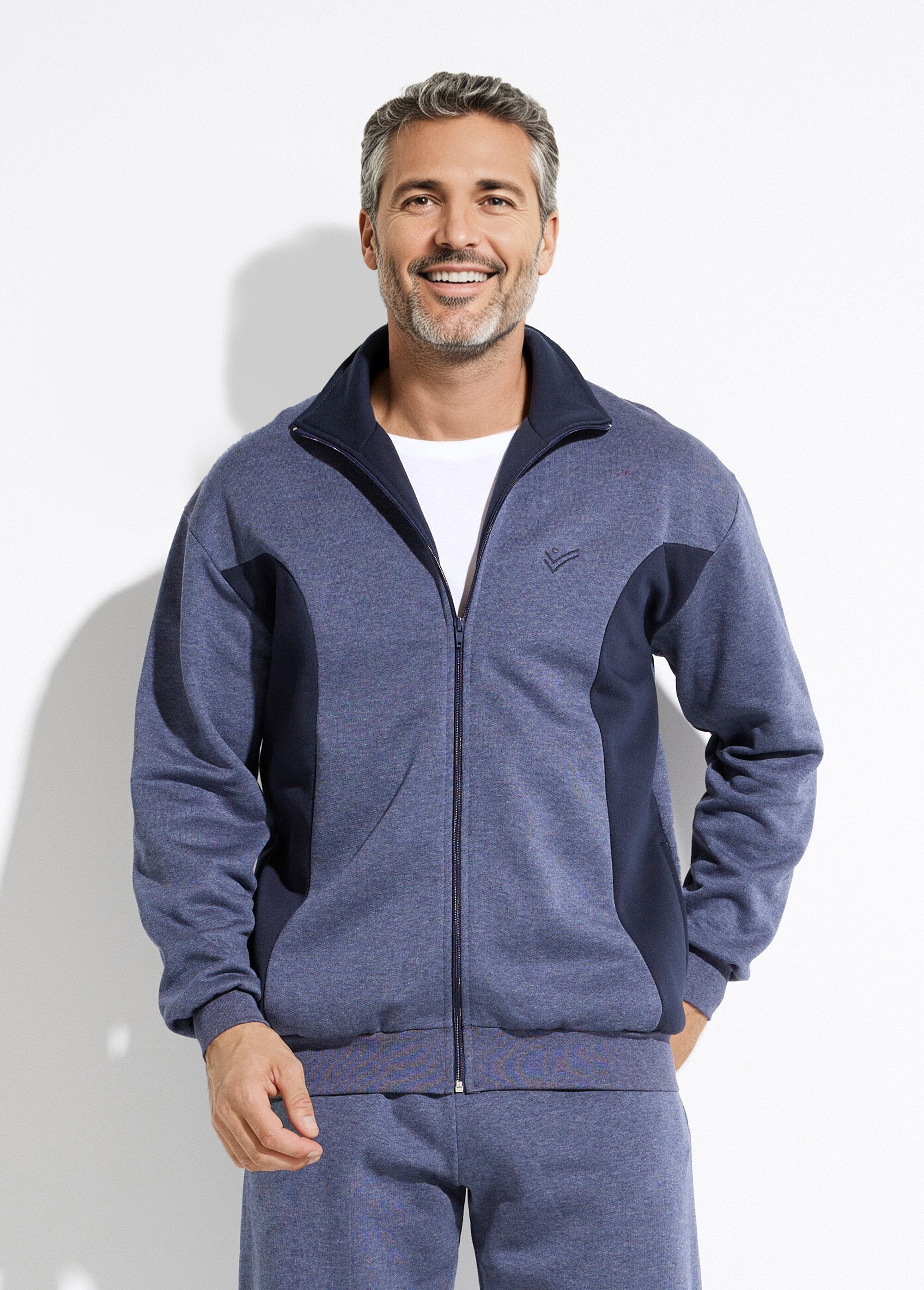 Two-tone_cotton_fleece_zip-up_lounge_jacket_Grey_and_navy_blue_SF1_slim
